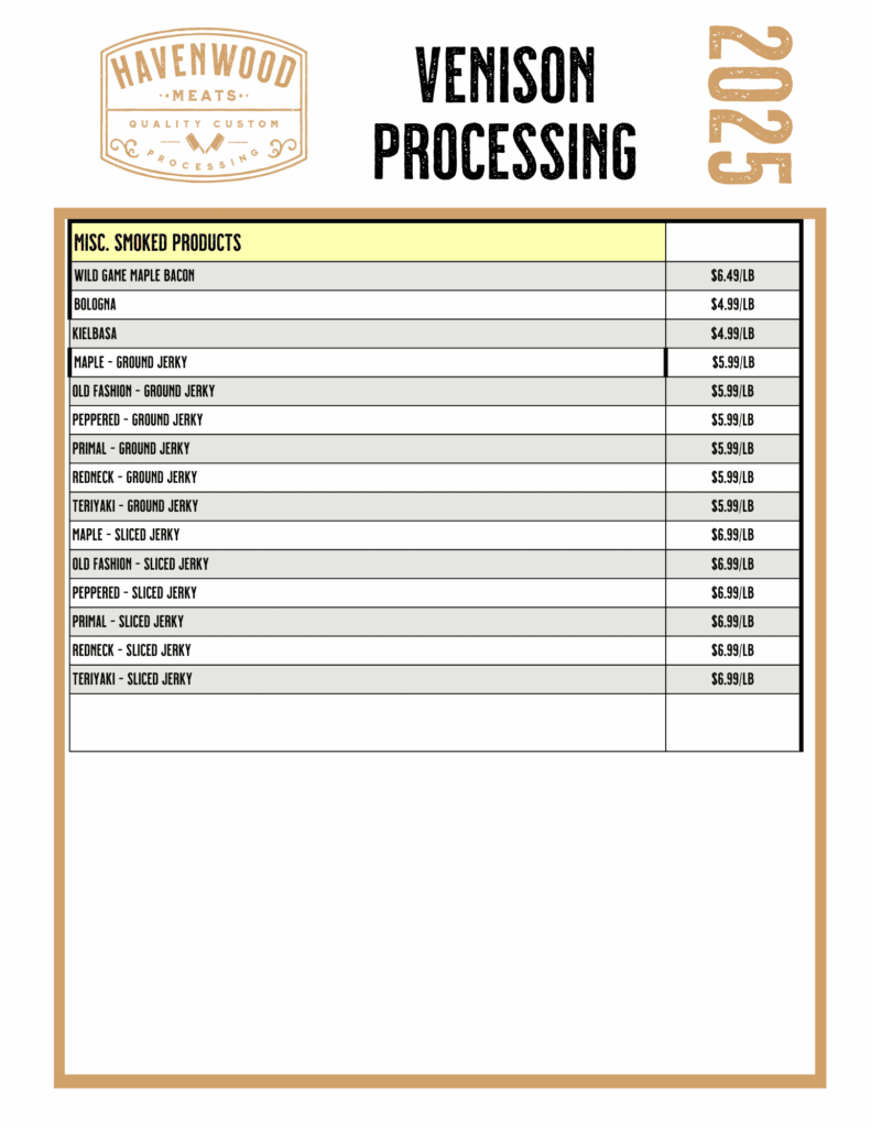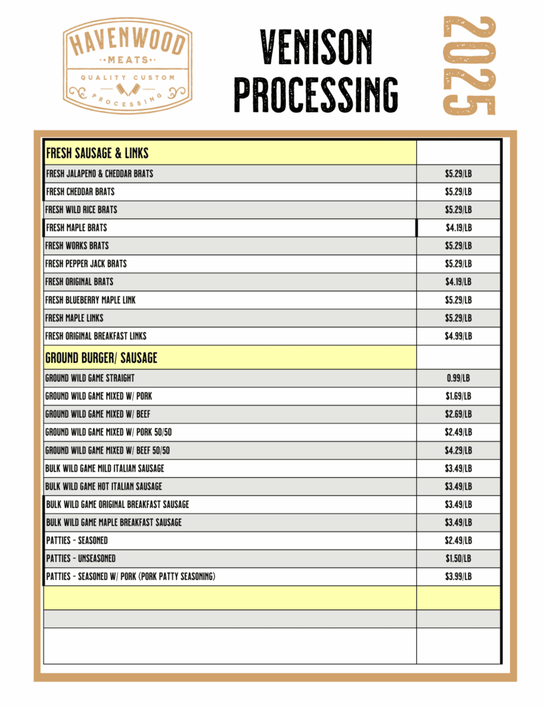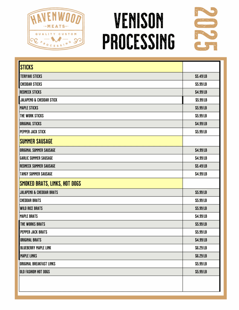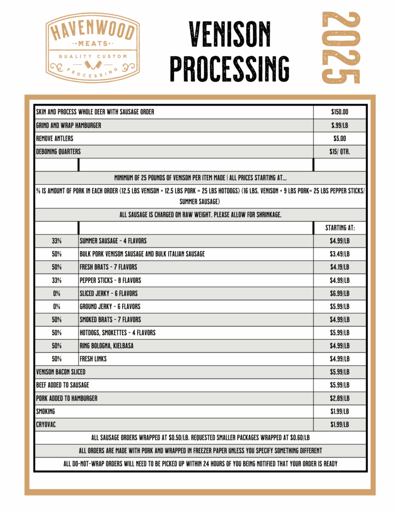 Please familiarize yourself with our updated Wild Game process and expected wait times for Deer Season 2025.